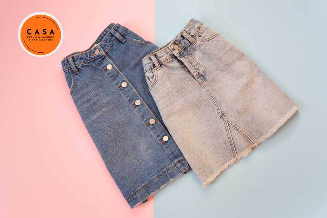 10. Vải jean: Jean là loại vải cứng cáp, thường được sử dụng cho chân váy dáng bút chì hoặc xòe.